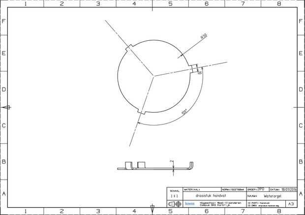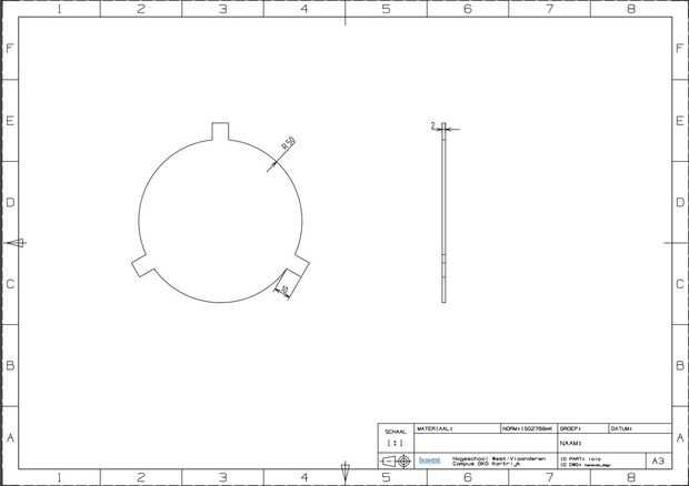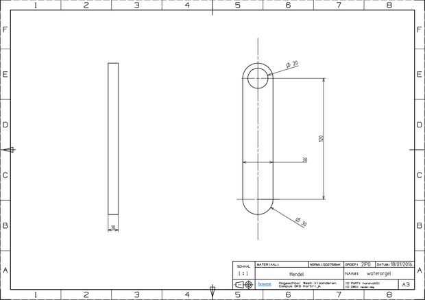 - La otra parte tiene un espesor de 10 mm. hay un agujero en él donde puede poner la forma cilíndrica a través. El diámetro es 20 mm.