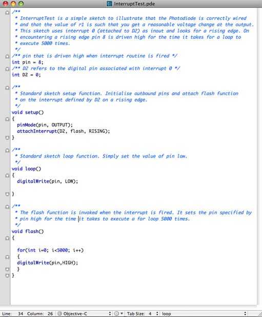 En este punto el primero de mis bloques de construcción fue en el lugar. Tenía una forma confiable de contar los destellos de un LED y por lo tanto un valor de contador actualizado por una rutina de interrupción.