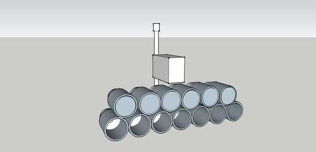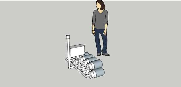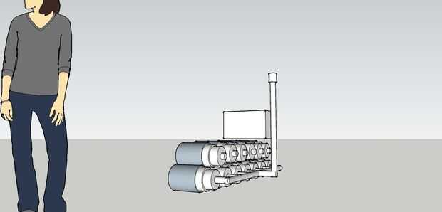 La fila superior de los tanques y botellas puede ser parcialmente lleno con agua para trabajar como un lastre. La hora de la marea alta lo suficiente el agua Levante toda la instalación y empujarlo más lejos en.