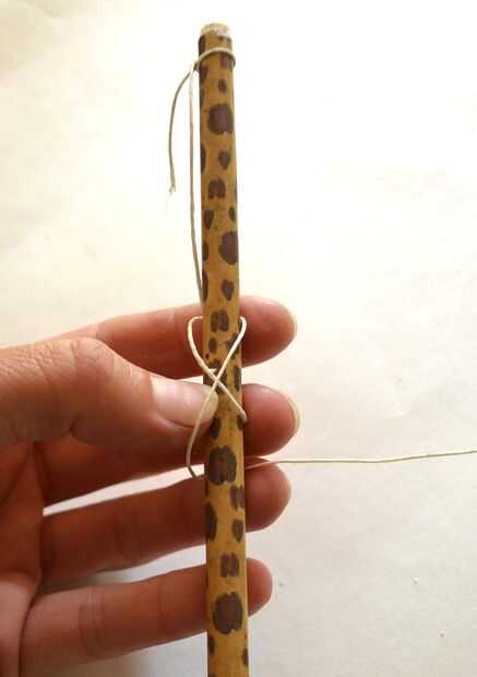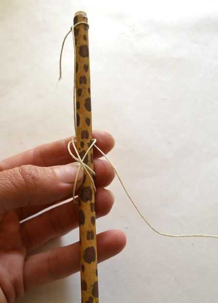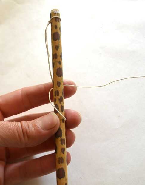Vaya con el hilo en la parte media del lápiz. Sostener el lápiz con los dedos en medio de ella.