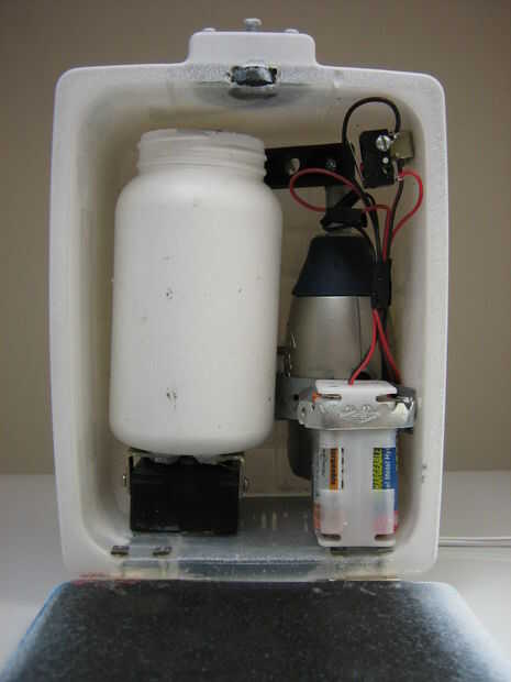 Esta diabólica broma funciona de esta manera: cuando la víctima se sienta en el inodoro, pulsar un interruptor. El interruptor activa un dispositivo motorizado, disfrazado como un botiquín de primeros auxilios en la parte superior sobre el inodoro y cae un gran chorro de agua.