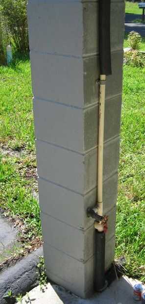 Mi casa está en una llanura de inundación (más específicamente, es en un pantano de Florida). Por lo tanto, mi casa está construida sobre pilotes. Este hecho increíble fácil para acceder a la cañería de agua. Fue sujetado a uno de los puestos de bloques de hormigón apoya la casa. Todo lo que necesitaba era una sección recta después de la principal de agua de cierre para instalar el nuevo medidor. Después de quitar un poco de aislamiento, tuve mi sección recta para trabajar con.