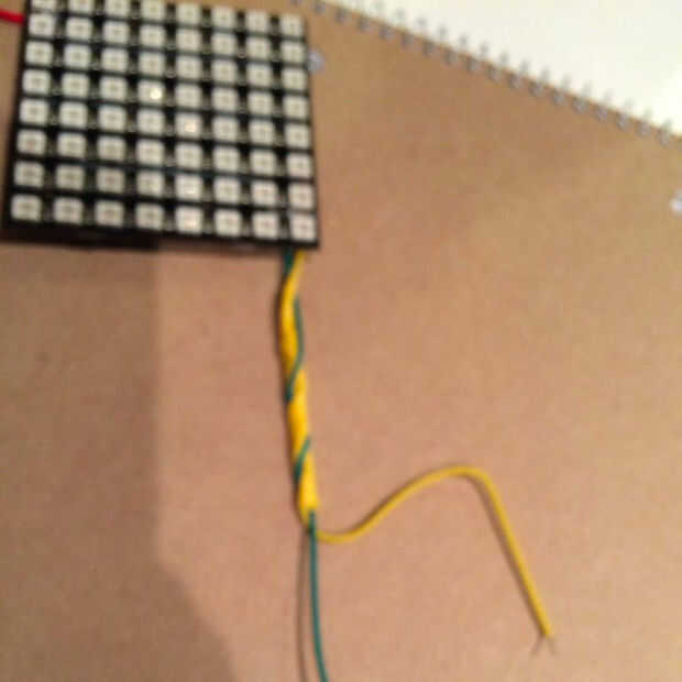1) soldado una resistencia directamente a la plataforma de entrada de datos en una de las matrices, soldar un cable a esa resistencia. Este es el cable que se conecta a cualquier pin es salida de datos sobre de ti Arduino.
