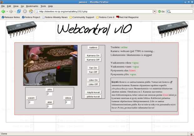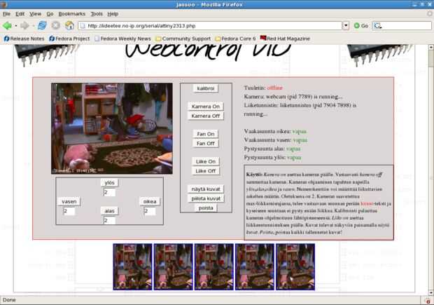 En la página de control que el usuario puede controlar cómo se convertirá la webcam y cuántos pasos se ejecutará. El usuario también puede activar la cámara web y vía interfaz web. Información sobre los Estados se actualizará inmediatamente en pantalla. Usuario también puede activar el if en línea, del detector de movimiento el movimiento de detectd cámara, guardará automáticamente los marcos. Nombramiento de los cuadros se realiza con "marcas", por lo que es posible averiguar cuando se tomó la fotografía.