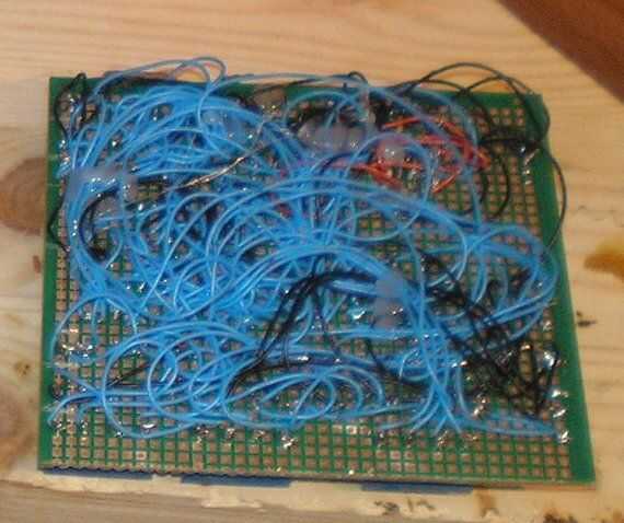 De la soldadura de los componentes en el tablero y eso es todo. Sobre el cableado... no hay nada que decir =)