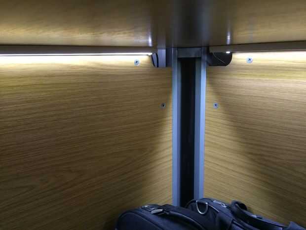 Las lámparas de estante y escritorio bajo I creado por corte relevante longitudes de enlace del cable 16 mm x 16 mm (comprado de ScrewFix) y adherir las longitudes equivalentes de tira de LEDs (de Ebay) interior para la salida de luz de la cubierta y eliminar reflejos. Éstos eran por cable a los bornes de la unidad de control por hilo negro campana multinúcleo y poner en marcha con doble espuma pegajosa echada a un lado (foto arriba, debajo de escritorio).
