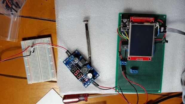 de interfaz – A TFT LCD con pantalla táctil es una gran manera de incorporar una pantalla y los controles juntos sin tener que agregar botones al circuito. El touchscreen de LCD utiliza los mismos pines SPI como el ISP, y pueden interferir cuando se está programando el microcontrolador utiliza ISP. Encontré que agregando resistencias de 100 ohmios entre los pines del LCD MOSI y MISO SCK y el microcontrolador resuelto este problema. La pantalla de TFT LCD tiene pines SCK, MISO y MOSI separados por la pantalla táctil y la pantalla, pero estos sólo pueden ser saltados juntos. También utilizo un transistor para encender el LED de la pantalla cuando se toca la pantalla. En una versión anterior, izquierda la pantalla había iluminada todo el tiempo y sólo por cable el LED directamente en el poder de 3v3.