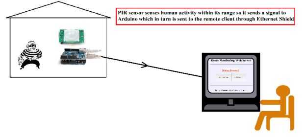 Como parte del proyecto de Universidad, yo y mis compañeros nos asignó el proyecto de detección de la actividad humana por el uso de sensores de PIR(Passive Infrared) y eso no es todo la información debe transmitirse a un cliente remoto, shield Ethernet fue utilizado para el propósito.