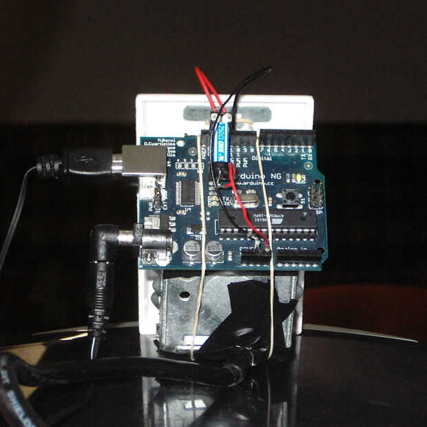 Conectar el Arduino a la caja, asegurándose de que aislar con cinta aislante. Usé una banda elástica para sostener, pero mi método no es perfecto.