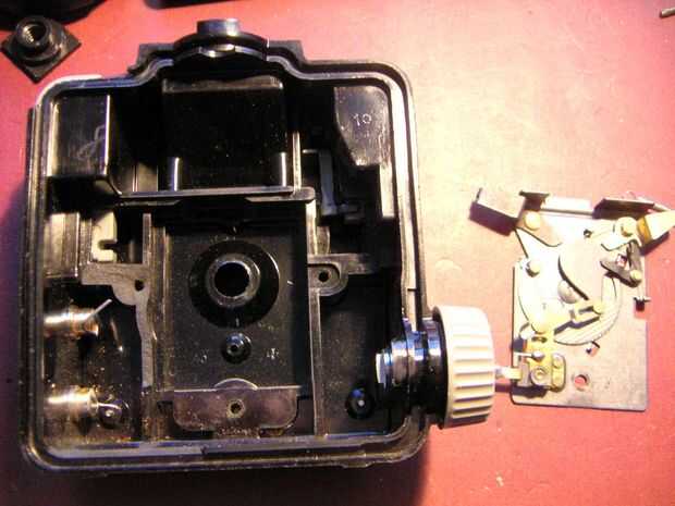 Abre el Brownie que es bastante fácil ya que la cámara es sólo una cajita con un pequeño cierre en la parte superior que nos permite ver lo que en el interior, después es muy fácil a quitar todos los mecánicos y la parte delantera de la lente como se muestra en las fotos.