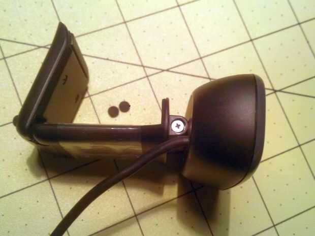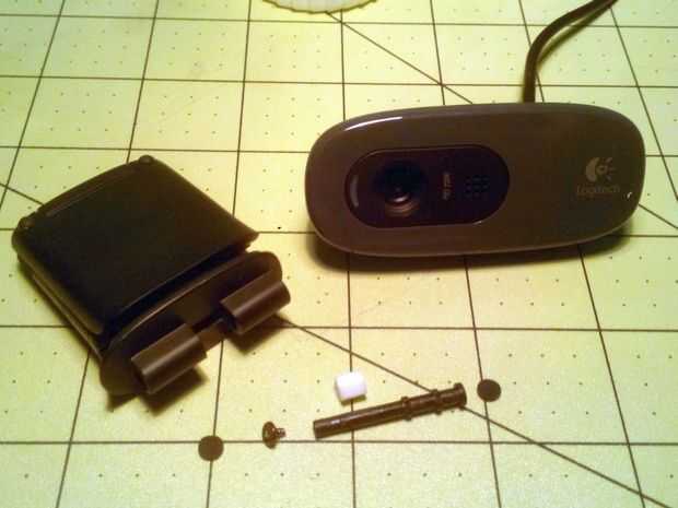 Empezar por deshacerse del soporte en la parte posterior de la cámara web.