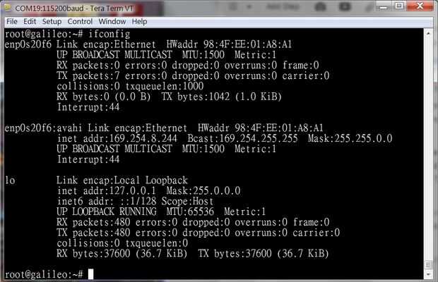 Después de que Galileo ejecuta Linux, o Término de Tera o masilla puede utilizarse para abrir una consola (shell) de Galileo Linux en tu PC. Puede utilizar la consola para instalar el librería OpenCV cad control tu tabla de Galileo por una shell de Linux. La Página te enseña cómo utilizar PuTTY para conectar la placa de Galileo. El nombre de usuario de la cuenta por defecto es root. No dar ninguna contraseña.