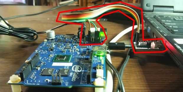 Ahora, puede insertar la tarjeta micro-SD quemada a su Junta de Galileo GEN2. De energía en el tablero y conectar el convertidor serial USB-RS232. En el convertidor, solo conectar clavijas RXI, TXO y GND. Puede consultar la figura adjunta. Debe instalar al driver del convertidor serial de tu PC.