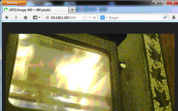 Con el servicio iniciado ahora puede abrir una página web en su computadora normal y yendo a la IP de la frambuesa pi en el puerto 8081 (en la barra de direcciones) debería poder ver tu webcam (tenga en cuenta que el en la foto muestra puerto 8089 como he instalado esto en el archivo de conf. El puerto predeterminado es 8081): 192.168.1.105:8081