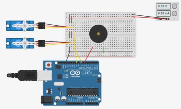 La segunda cosa importante es alimentar los servos por separado. El arduino tiene 5v hacia fuera pero no es suficiente ejecutar 2 servos y el arduino al mismo tiempo. Las cosas se ponen funky al hacerlo. Usar la fuente de alimentación de la placa para alimentar los servos independientemente. Pero no te olvides tierra a arduino
