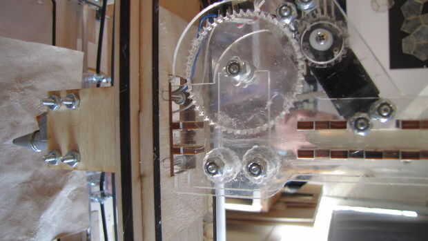 Puede mover los engranajes según colocación de calefactorio. Usted necesitará finess esta colocación ya que con frecuencia está demasiado cerca o demasiado lejos del calefactorio. "B" piezas se utilizan para sostener el filamento de palillo de pegamento en su lugar.