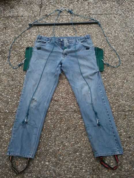 4 - pierna y pie descansan de una correa de lazo cosida en el interior de la pierna del pantalón