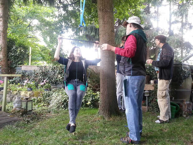 Hace dos años que tuve la idea de hacer un colgante en ropa de la silla. Después de muchos experimentos y dibujos que empecé este proyecto hace 3 meses. Esto no fue un proyecto fácil de hacer. Para el trabajo de costura estaba dependiente de otras personas porque no tenía las habilidades de costura. Seguridad primero fue mi enfoque. Caer no es ninguna opción.