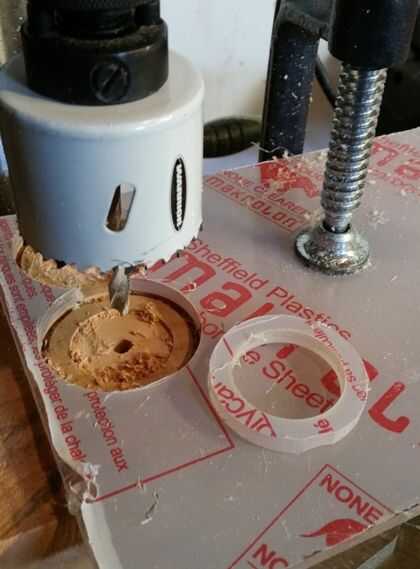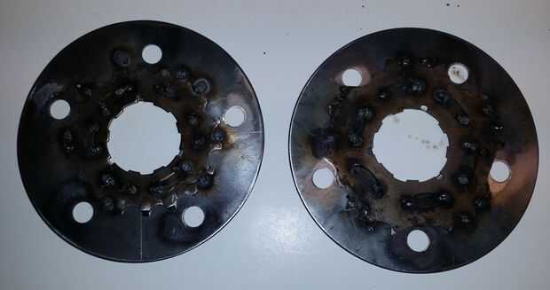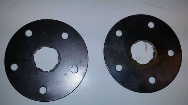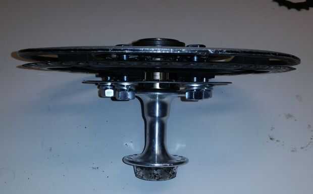 hizo un par de discos para poder soldar piñones del cassette de salvarse en los discos y los discos de la rueda dentada grande en negrilla. Utilicé una combinación de separadores existentes de los discos cassettes y acrílico cortado para ubicar la rueda dentada y montarlo en el cubo del piñón libre