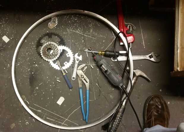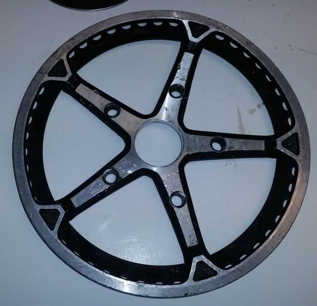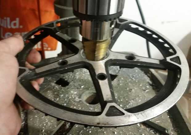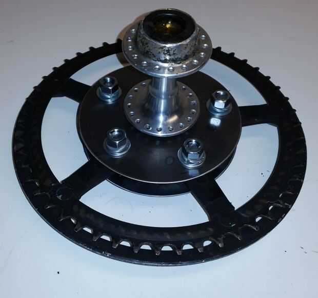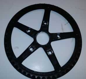 la rueda dentada grande vino de una manivela usada de una tienda de bicicletas.