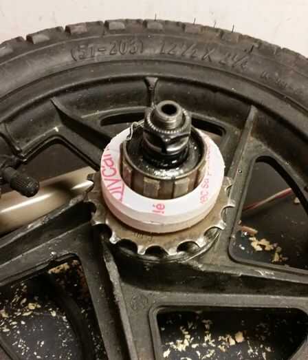 Necesitaba un piñón grande en el neumático y una pequeña en el motor. Hice los cálculos y tenía miedo de un motor de 6.000 rpm las malas hierbas se traduciría en un scooter muy rápido (no por el camino y va actualizando en el futuro)