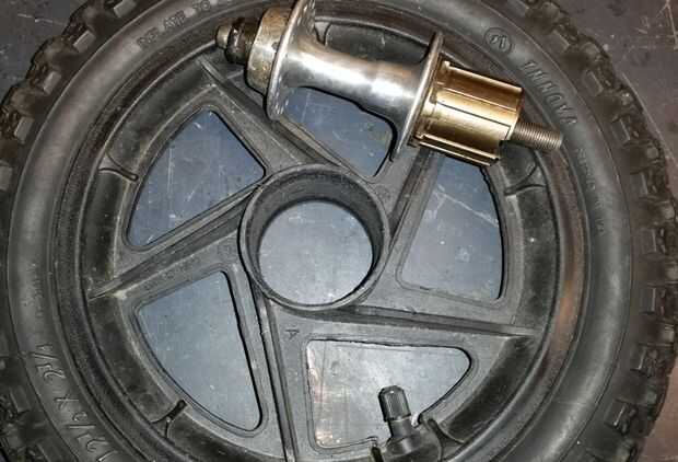 Perforado, corte, archivado y lijar el eje neumático existente y JB soldado nuevo hub a la llanta del sale.