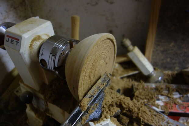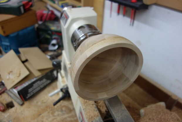 Después de que el pegamento se ha secado lo pongo en mi torno a salir el huevo completo (después de que había quitado la varilla roscada, por supuesto).