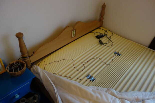 Puse los sensores de movimiento debajo de la capa superior del colchón, que ellos como cerca del cuerpo posible, sin darse cuenta les.