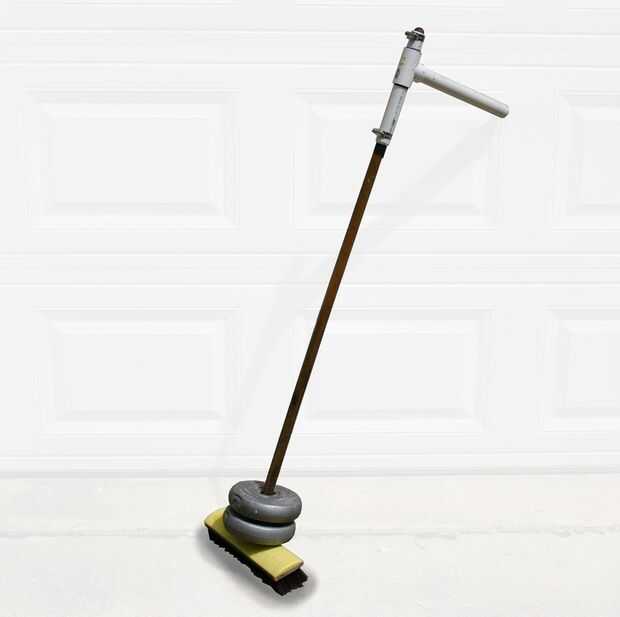 Para utilizar, simplemente montar el cepillo con algunos pesos en el mango e ir fregar algo.