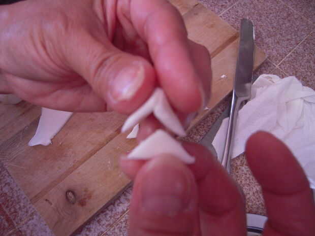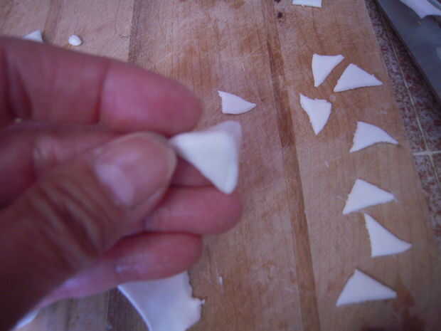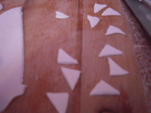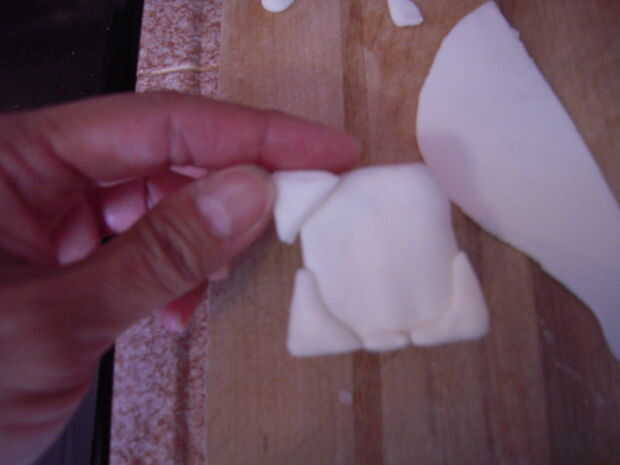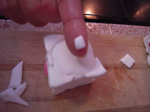 Luego añada una pequeña plaza de fondant en el entre las esquinas.