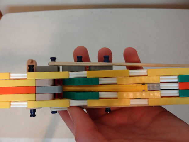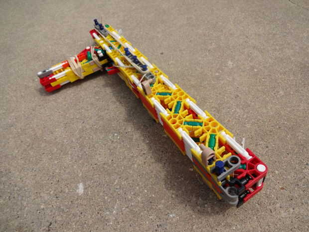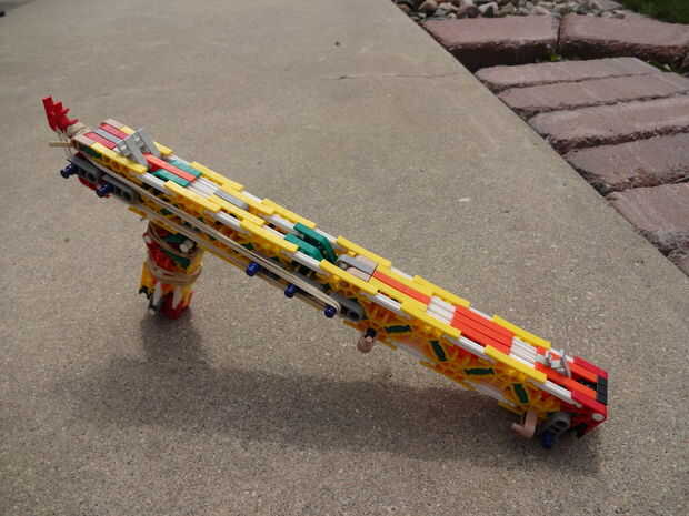 Esta arma es, como he dicho, ha mejorado mucho en mi primera versión y es divertido disparar. Está cargada y dispara barras amarillas.