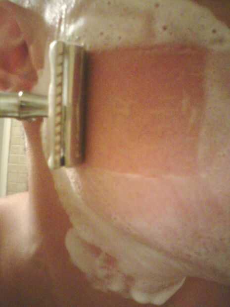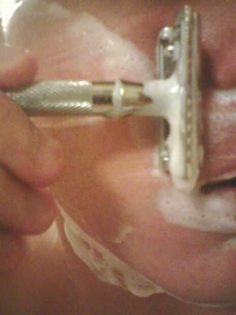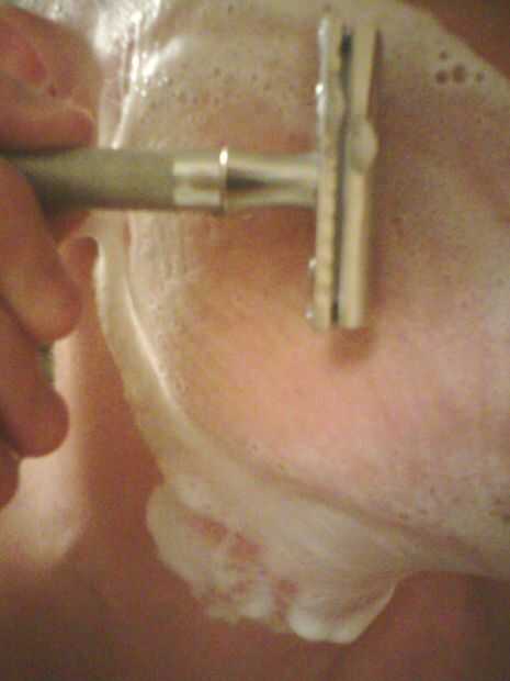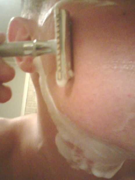 Vamos a refinar el afeitado anterior va a contrahilo. Esta vez vas a querer guardar la navaja perpendicular al piso. Otra vez, no añada presión. Deje que la hoja de corte.
