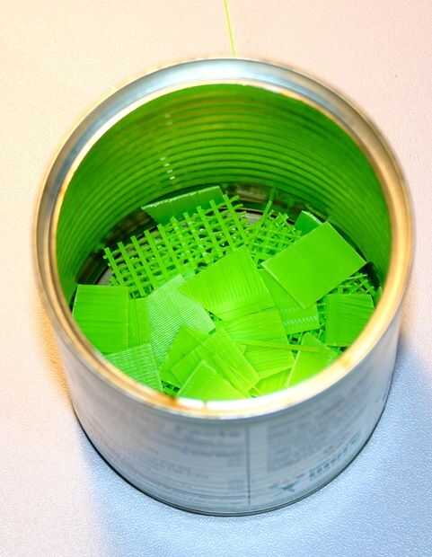 Corte trozos de plástico en una lata.