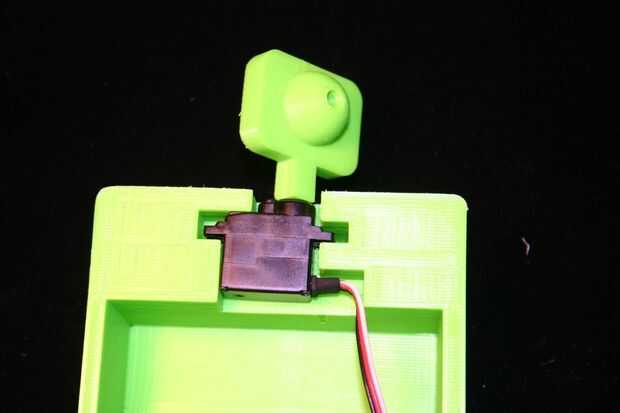 Presione el tallo del ojo en el servo y asegúrese de que la Asamblea quede en el caso (si se utiliza un servomotor diferentes--la ranura de montaje en el caso tendrá que configurarse diferente).