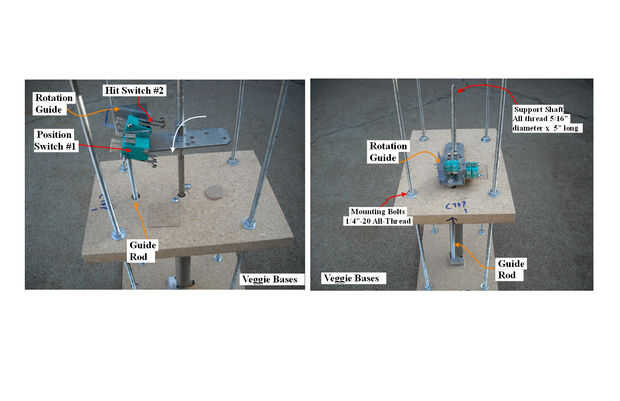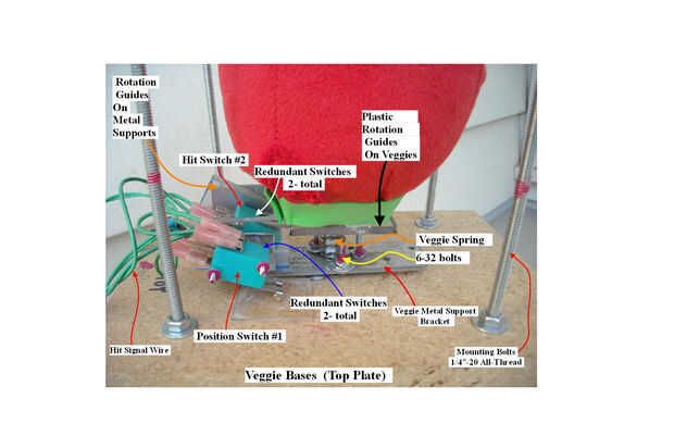 El soporte de soporte de metal que se unen al cilindro de aire que provee el soporte para los interruptores, guías de rotación y los resortes para mantener los caracteres vegetales mirando adelante. Las guías de rotación se encuentran en la parte inferior de las verduras, con mandos, barra de rotación. Todo esto fue agregado para evitar que las verduras de rotación cuando golpea y va hacia arriba y hacia abajo. Una guía adicional de metal fue unida al frente de cada vegetal para impedir la rotación de caracteres. Las manchas blancas (6-32) por los resortes de metal mantienen la rotación de la forma de resorte.