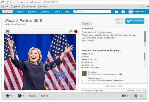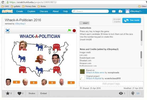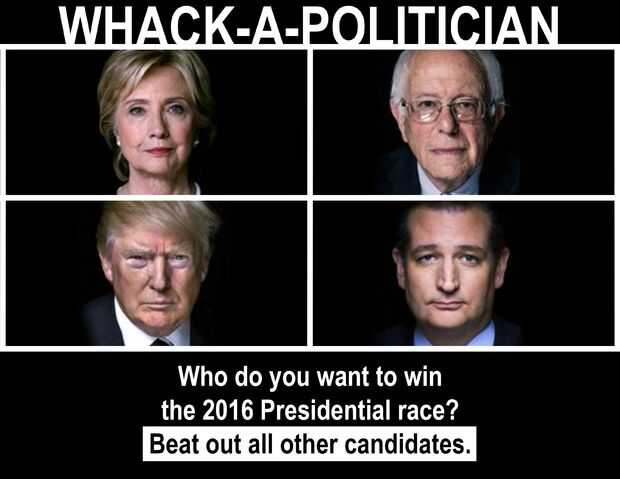 Whack-A - es un giro en el clásico juego de Whack-A-Mole. Whack-A-político cuenta con cuatro candidatos en la carrera presidencial de 2016, en el que los jugadores elegir a su candidata favorita y golpear el resto de los políticos de la carrera. Cada candidato cae fuera de la carrera después de ser golpeado 30 veces.