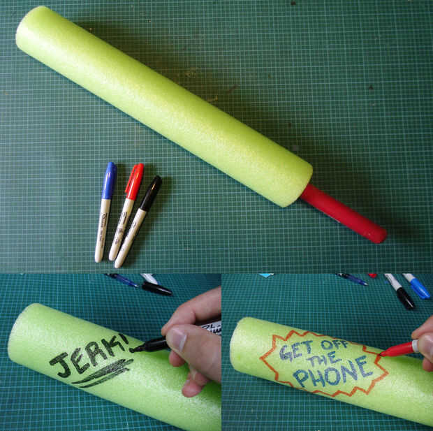 Con marcador permanente, embellecer su bonk whack con dichos colores. Colocar selectivamente los dichos alrededor de la espuma para que tenga una opción de mensaje a enviar.