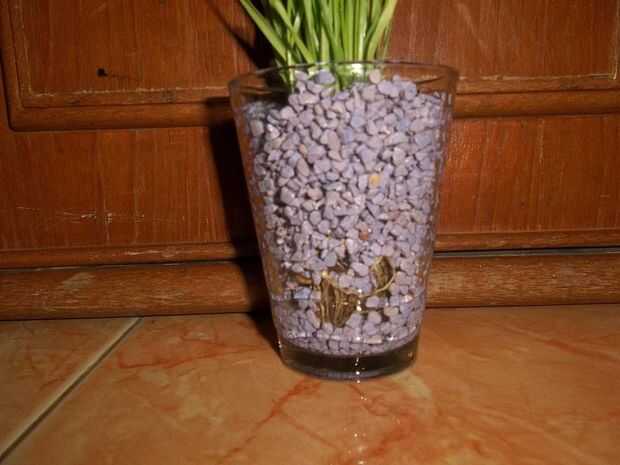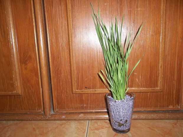 Espere hasta que el wheatgrass es alto. Usted puede agregar más piedras para mantenerlo stand, cortaron