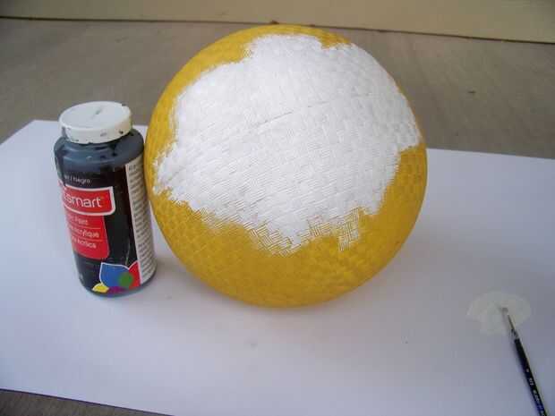 Cubrir la parte superior de la bola con poco grueso blanco de acrílico pintura.
