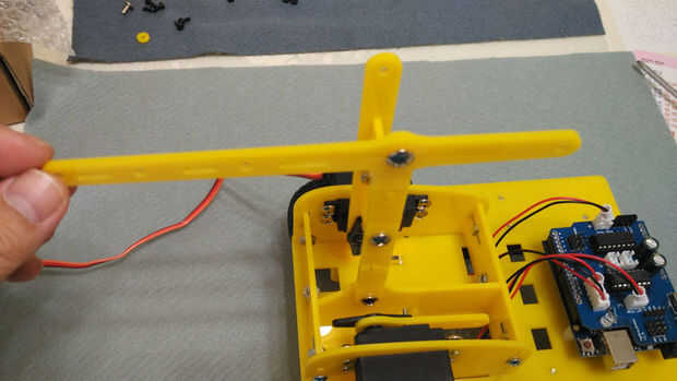 體感手臂車 (官網) 機構源自MeArm, 是結合藍牙體感搖控和超聲波偵測自動夾物的開源教育用手臂車, 藉由DIY套件和程式範例培養手作.程式設計和機電整合能力, 從學生到社會人士都適合玩. 夾爪和吸盤採模組化設計, 可自行替換.Lasercut.zip:雷切設計圖(3mm,2張A4壓克力板)curcuit.zip:擴展板電設圖(EagleCad)WheelArm.pdf:組裝步驟(英文版,當站方的中文版沒有亂碼後會提供中文版喔)Software.zip 解壓後包含:1. 安卓Apk檔和原始碼(