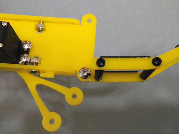 體感手臂車 (官網) 機構源自MeArm, 是結合藍牙體感搖控和超聲波偵測自動夾物的開源教育用手臂車, 藉由DIY套件和程式範例培養手作.程式設計和機電整合能力, 從學生到社會人士都適合玩. 夾爪和吸盤採模組化設計, 可自行替換.Lasercut.zip:雷切設計圖(3mm,2張A4壓克力板)curcuit.zip:擴展板電設圖(EagleCad)WheelArm.pdf:組裝步驟(英文版,當站方的中文版沒有亂碼後會提供中文版喔)Software.zip 解壓後包含:1. 安卓Apk檔和原始碼(