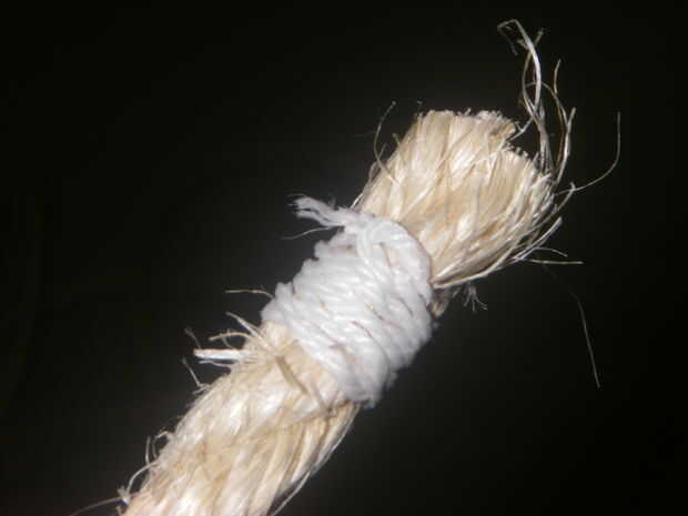 Para batir es el proceso de atar la cuerda para evitar que se deshilache. Es muy fácil de hacer. Para este instructable necesita guita muy delgada o cadena para batir y un extremo de la cuerda del sisal.