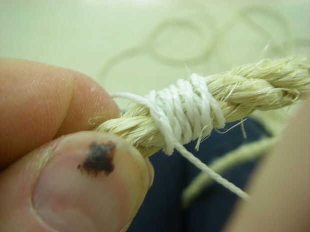 Mantenga repitiendo un nudo en la parte delantera, y empate a uno en la espalda, etc. hasta que estés casi fuera guita.  Es mejor trabajar todos estos nudos del extremo de la cuerda a lo largo para que el nudo final termina del extremo del se.
