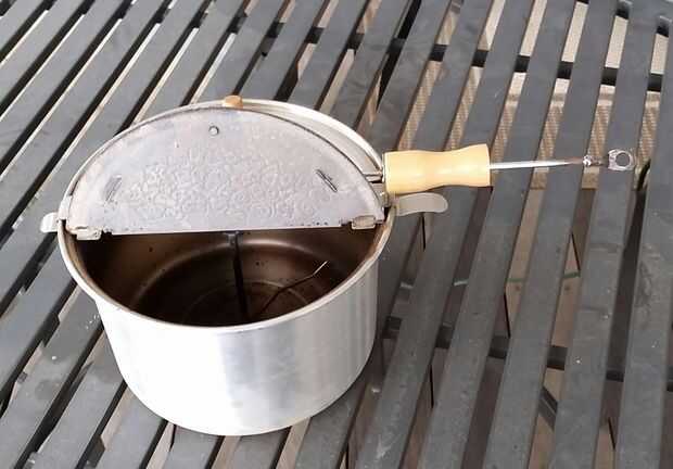 Un estallido de viento es una hornalla palomitas que utiliza una manivela para girar a los granos. Esto es perfecto para convertir granos de café mientras que asado. Mina que compré en una venta de garaje por $7.