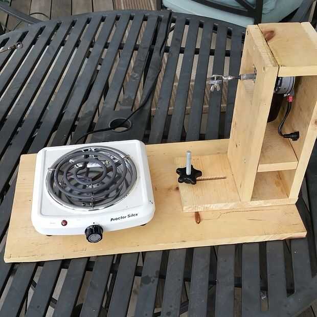 Yo también había montado en la carcasa del motor del limpiador en un pedazo de estantería de pino. Es fácil de llevar toda la configuración de la asación. Marco-montaje del motor es movible, con perilla y T-perno en una ranura en la estantería.
