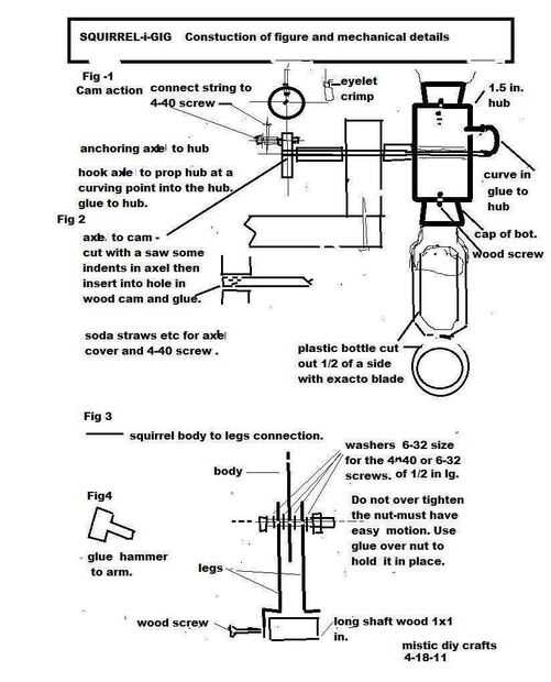 Vinculación puede ser un problema al conectar la cam a la figura. Utilizamos el estiramiento cadena en el Departamento de joyería de tiendas de artesanía. También hemos utilizado alambre rígido, formado en un lazo alrededor de la conexión de la cam para trabajar bien. La cadena estaba acostumbrada también a detener la figura gire demasiado, esto no es necesario cuando se usa un acoplamiento de alambre. Ver lista de materiales.