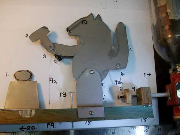 Forma el eje de acero como se muestra con un extremo formado como un gancho. Este gancho se pega al centro para mantener el eje de rotación con el eje... El otro en encajará en la cam. El extremo del eje se puede sangría con una sierra para anclar la leva a él con pegamento.