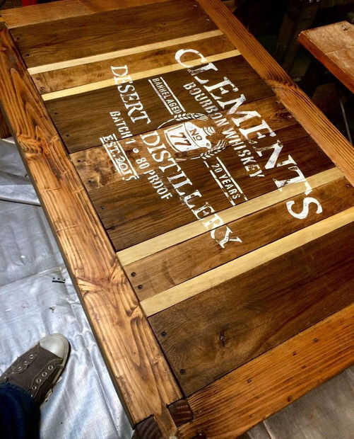 Aquí está mi mesa de palet con incrustaciones de logo. La parte superior está hecha de madera plataforma que fue arrancado y cortado a la medida. El logo fue cortar en un router CNC y empotrado en la parte superior. ¡ Disfrute!Paso 1: Plataforma made