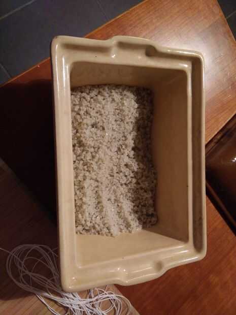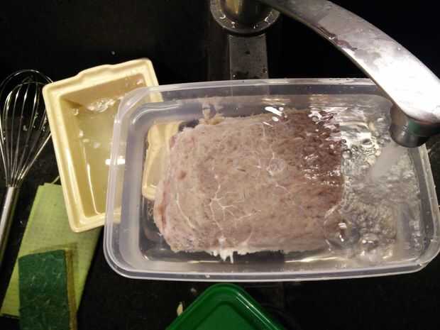 Después de 24 horas en el sal, enjuaga con mucha agua y déjelo remojar en un tupperware hermético en agua dulce, cambiada regularmente, por 12 horas más.