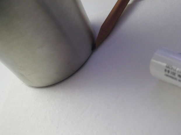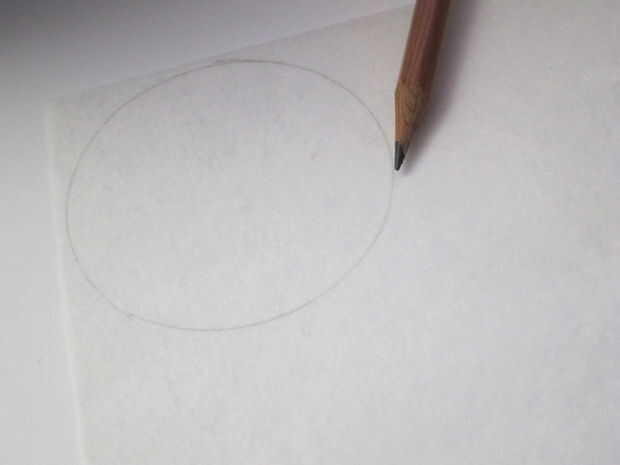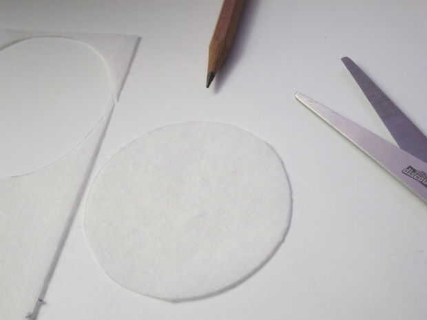 1 - Inicio aplanando su hoja borrador de pizarra. 2 - usar algo redondo como un guía y dibuja un círculo de unos 5-7cm de diámetro al lado de la esquina. 3 - cortar el disco. 4 - cortar la cuarta parte restante del tejido.